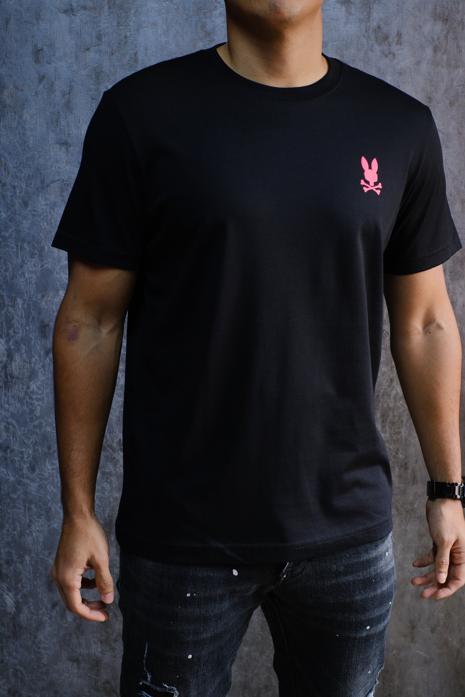 Camiseta PSY Negra Logo Fucsia
